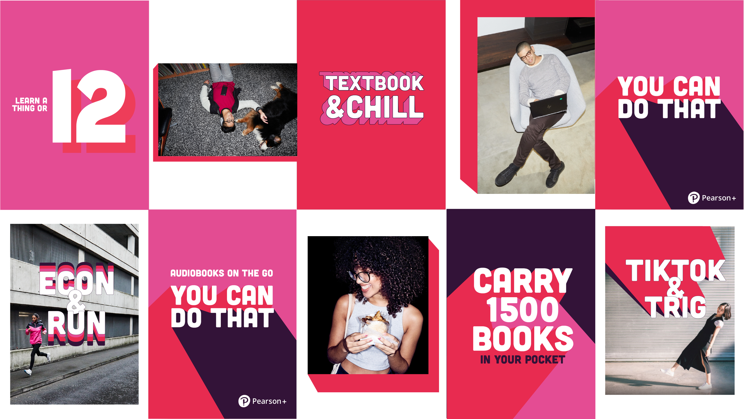 During a pitch with VMLYR for e-textbook giant Pearson+, I developed an eye-catching conceptual route called You Can Do That designed to get Gen Y to consider ditching their physical textbooks for e-textbooks. While another platform line was used, they did use a modified version of this look for the little bit of content they put out.